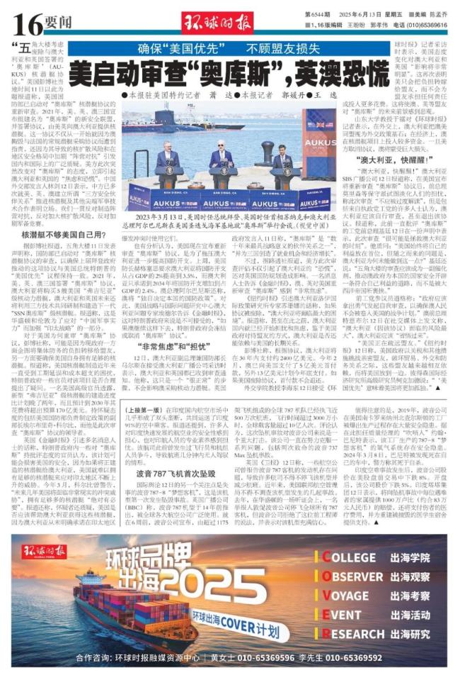 该协议从一开始就因澳大利亚撕毁与法国的常规潜艇采购协议而受到指责,还因其可能带来的核扩散风险和地区安全格局中的“阵营对抗”问题引发国内外广泛质疑。美方此次突然改变对“奥库斯”的态度,引起了澳大利亚和英国的担忧。
