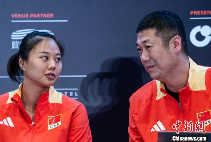 图为中国女排主教练赵勇(右)和队长龚翔宇交流。中新网记者 侯宇 摄