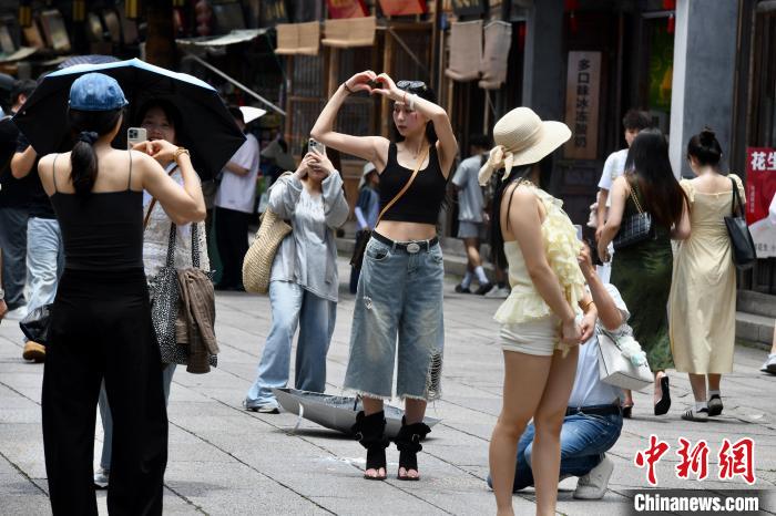 6月27日,游客在福建福州三坊七巷留影。中新社记者 王东明 摄