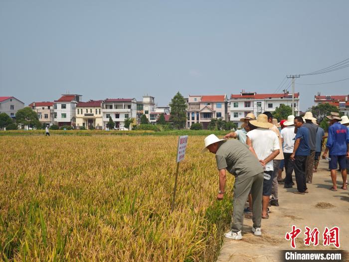 中新网南昌7月8日电 (熊锦阳)7月8日,2025年江西省水稻新品种展示观摩会在江西省南昌市进贤县举行,14个早稻新品种闪亮登场,为农户展示发展新“稻”路。