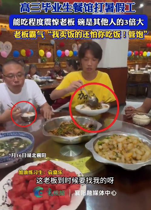 小伙打暑假工太能吃碗比老板的大3倍!能吃程度震惊全场,老板霸气回应:“我卖饭的还怕你吃饭!管饱!”