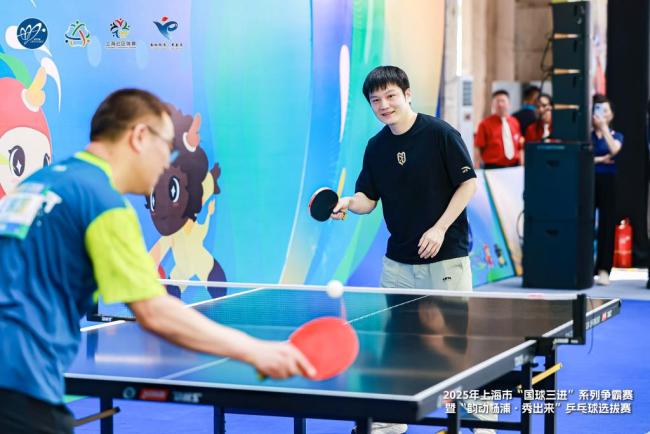 临近大暑节气,七月中旬的上海天气炎热,但樊振东的到来为乒乓球爱好者点燃了这个夏天。7月18日上午,2025年上海市“国球三进”系列争霸赛暨“韵动杨浦·秀出来”乒乓球选拔赛在杨浦区复兴岛船台PARK正式拉开帷幕。樊振东现身赛场,给了所有参与者一个巨大的惊喜。