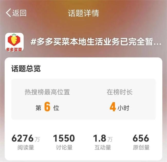 2024年,“多多买菜本地生活业务已完全暂停”的话题,一举冲上微博热搜。