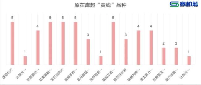 原在库超“黄线”品种按超黄线幅度降序排列,其中泼尼松片、红霉素肠溶片、苯巴比妥片、盐酸多西环素片、盐酸左西替利嗪口服滴剂这5个品种在今年历次名单中均被点名。