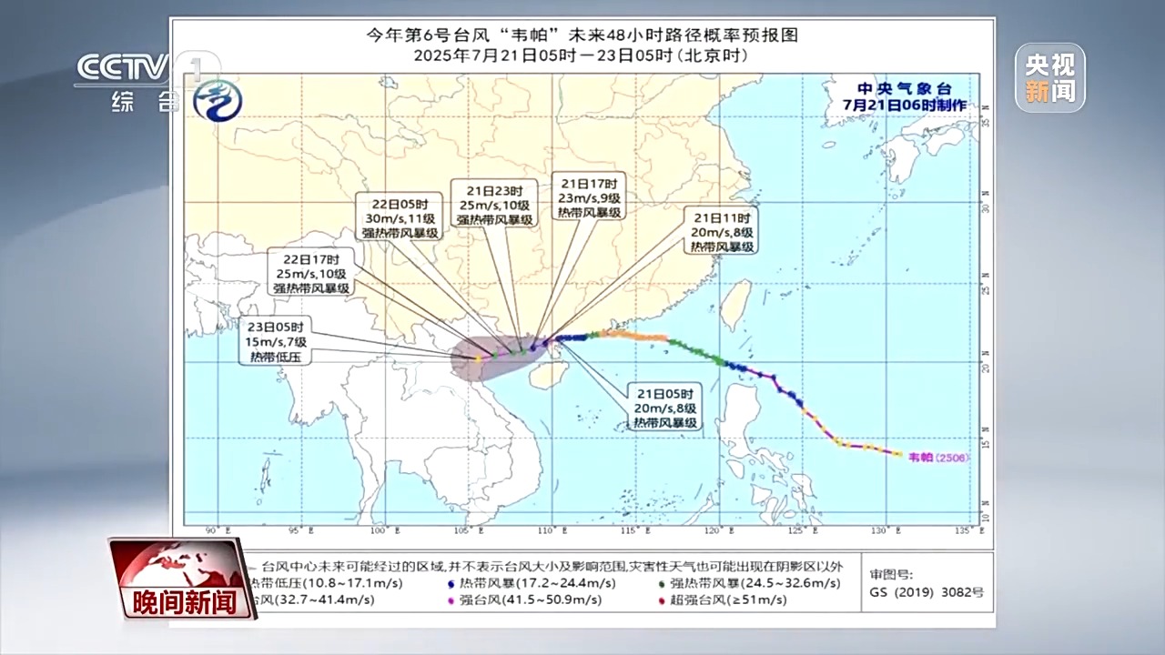同时,台风“韦帕”未来48小时路径概率预报图显示,21日5时“韦帕”是8级热带风暴级,21日23时增强为10级强热带风暴级,23日5时降为7级热带低压。台风在登陆之后,为什么强度并不是一直减弱?