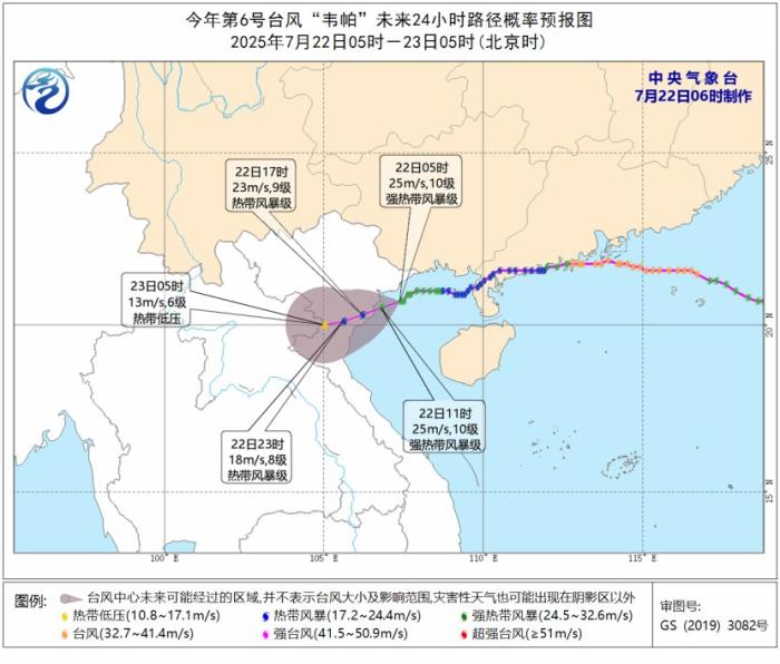 图1 台风“韦帕”未来24小时路径概率预报图(7月22日05时-23日05时)。 图片来源:中央气象台网站
