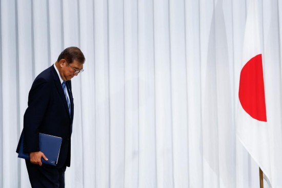 2024年10月28日,石破茂在日本东京自民党总部出席记者会。新华社发(Pool图片,金敬勋摄)