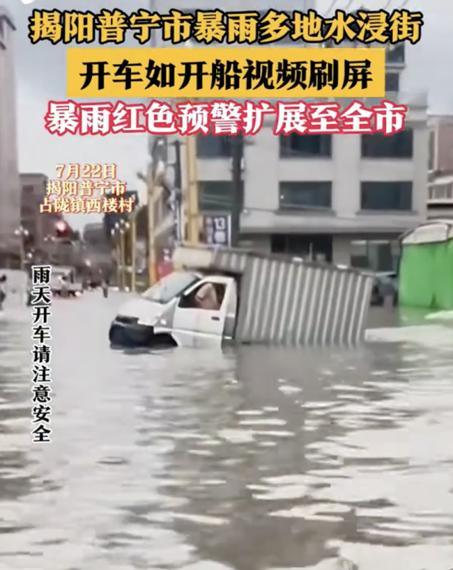 广东普宁暴雨多地水浸街 开车如开船。月22日,广东普宁市受台风“韦帕”外围环流影响出现持续性强降雨,多地严重内涝致街道积水成河。