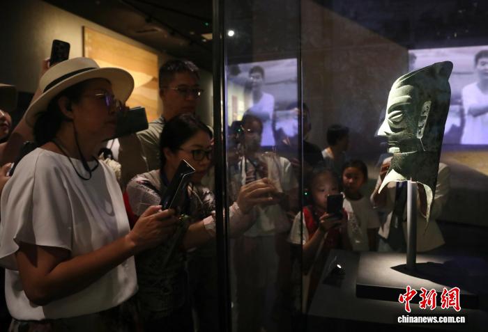 7月27日,参加“行走中国·2025海外华文媒体川渝行”活动的20余家华文媒体代表走进位于四川省德阳市广汉市的三星堆博物馆,近距离“接触”众多“知名文物”,感受古蜀文明的独特魅力。中新社记者 王磊 摄