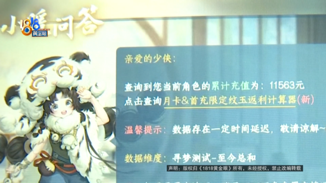 范女士反映,女儿在玩一款叫“逆水寒”的游戏。最近才发现这两年充了一万多块钱,她希望游戏公司把钱退回来。