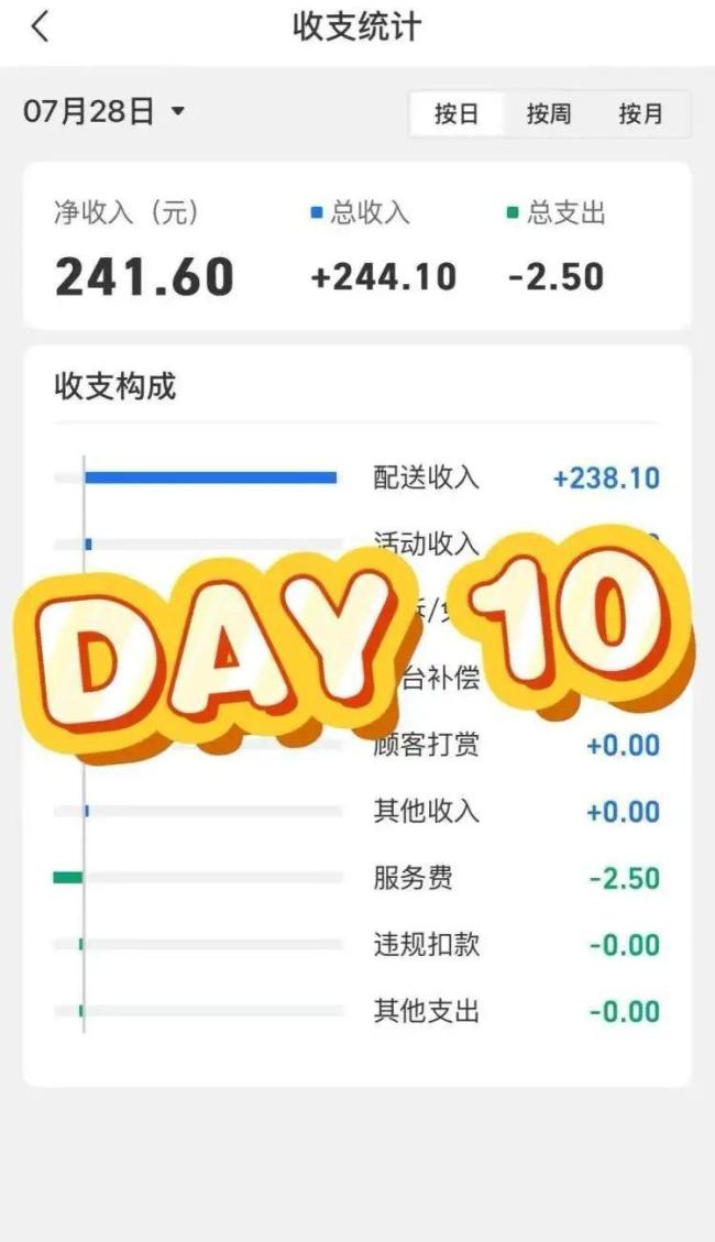 连续送外卖10天,草莓的每日收入均超过120元,最高时甚至超过了200元,并成功减重2斤。他本周的目标是再减重2斤。