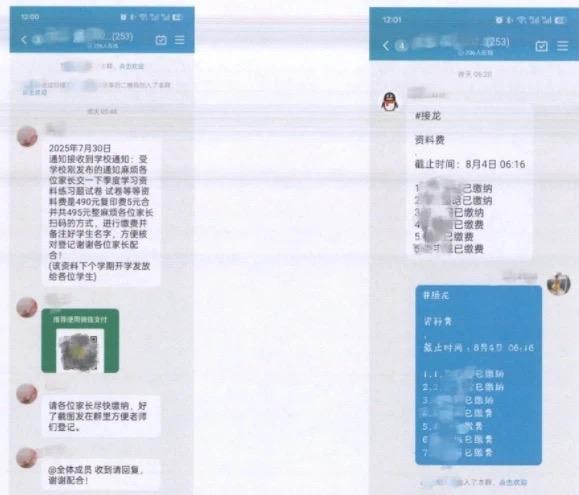 近日,北京某中学为方便高一新生家长沟通,将官方QQ群二维码印在入学手册上随录取通知书寄出。由于入群未设置审核环节,骗子使用与“群主”“管理员”相同的头像,在清晨5点多发布了群信息,称需要收取习题资料费和印刷费共495元,并附上了交款二维码要求家长扫码支付、备注学生姓名并在群内接龙回复。