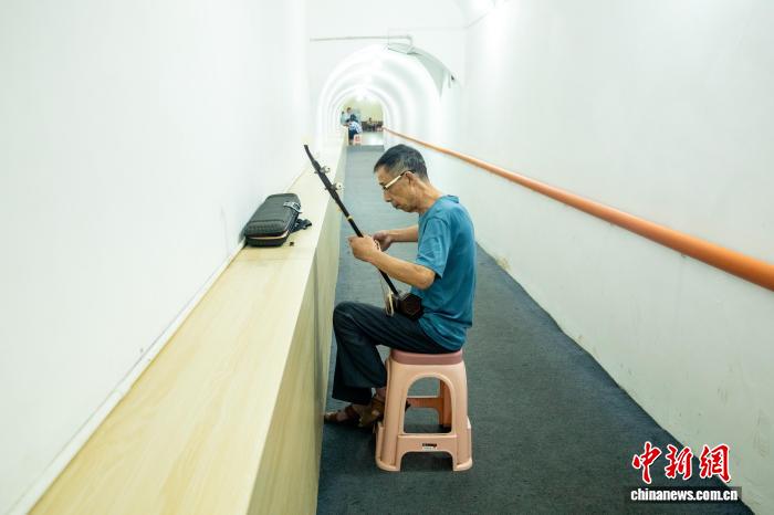 8月5日,在武昌蛇山人防工程纳凉点,一位市民在拉二胡。中新社记者 张畅 摄