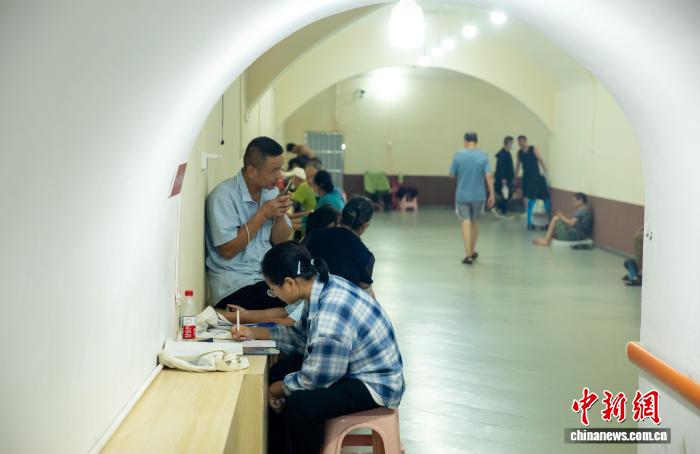 8月5日,市民在武昌蛇山人防工程纳凉点内纳凉。中新社记者 张畅 摄
