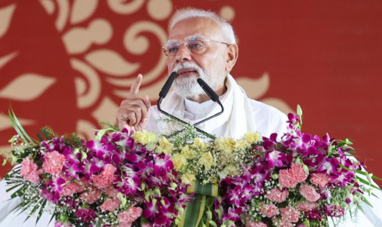 印度总理莫迪8月2日在印度北方邦城市瓦拉纳西的一个集会上发表讲话。(图片来自莫迪办公室网站)