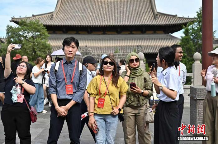 8月6日,来自16个国家的18位亚洲周边国家驻华外交官在位于山西大同的辽金寺庙建筑群华严寺参访。韦亮 摄