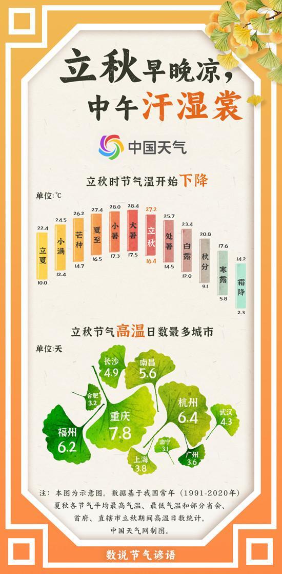 立秋是由热转凉的过渡期,全国平均气温开始下降。北方地区的炎热逐渐减弱,天气转凉;而南方则依旧炎热潮湿。立秋时节,我国西北和东北一些地方开始进入秋天,其他大部分地区仍处于夏日高温中。尤其是南方的一些城市如重庆、杭州、福州、南昌等地,高温依然频发,午后天气十分闷热。