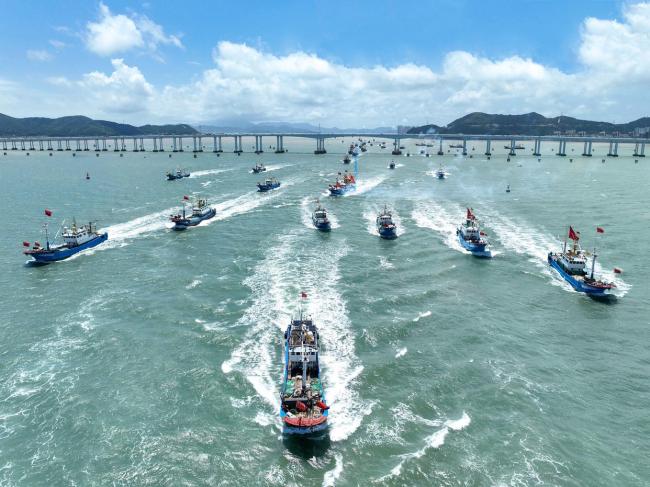 8月5日,浙江省舟山市普陀区大批渔船扬帆出海,前往东海渔场进行捕捞作业。根据《农业农村部关于2025年伏季休渔期间专项捕捞许可和捕捞辅助船配套服务安排的通告》规定,从当天12时起,单船桁杆拖网(桁杆拖虾)、笼壶类、刺网和灯光围(敷)网等四种作业类型的渔船,可以通过申请虾蟹类、中上层鱼类等资源专项捕捞许可的方式开展捕捞活动。