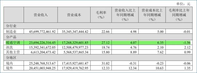 具体到产品线,暖通空调在营收规模、毛利率方面都是海信家电的第一核心业务。虽然报告期内营业成本同比上升6.35%、毛利率同比下降1.56%,但依然保持在27.12%的较高水平。相比之下冰洗及其他主营(厨电、汽车空调压缩机等)业务,盈利能力明显更强。