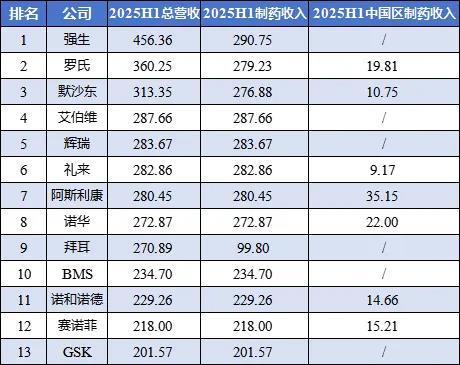 8月7日,礼来发布2025H1业绩,上半年营收282.862亿美元,同比增长41%。在已披露业绩的制药巨头中,礼来总营收排名第6,制药业务营收排名第4,位次相比2024年同期变动较大。