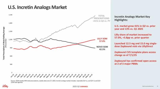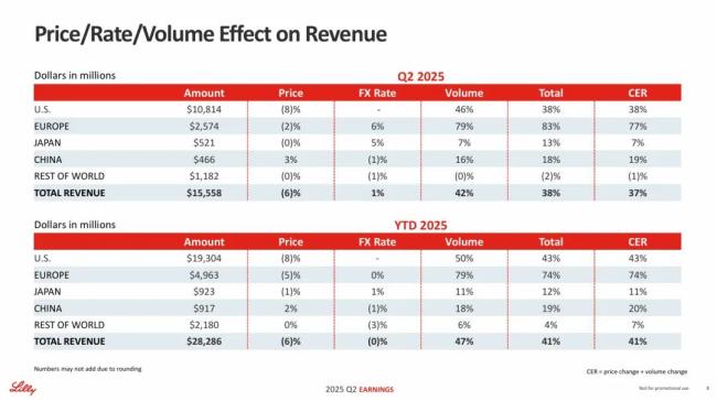 礼来2025H1:营收增长41%,制药收入跻身全球前5!替尔泊肽大卖147亿美元