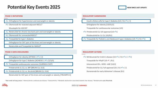 展望2025年全年业绩,礼来将全年收入预期从580-610亿美元上调至600-620亿美元。