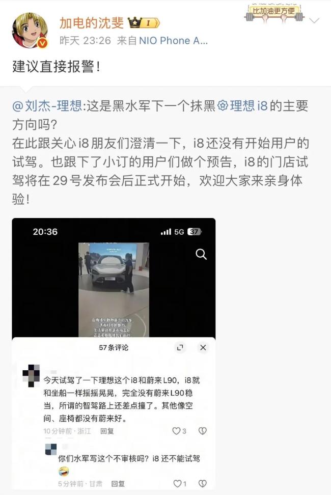 实际上,这不是理想和蔚来近期因为黑水军第一次“对线”。由于理想i8和乐道L90同期上市,并且同为大六座纯电SUV,因此有不少人会将两款车型拿出来做比较。在7月24日,理想汽车副总裁刘杰在社交平台晒出截图,称有黑水平恶意抹黑理想i8,虽然刘杰并没有直接点名说乐道水军抹黑一事,截图涉及乐道L90与理想i8的对比。对此,蔚来高级副总裁、乐道总裁沈斐次日在微博发文表示,网友已查实源头并非乐道,并要求刘杰道歉。不过,这件事也没有下文。