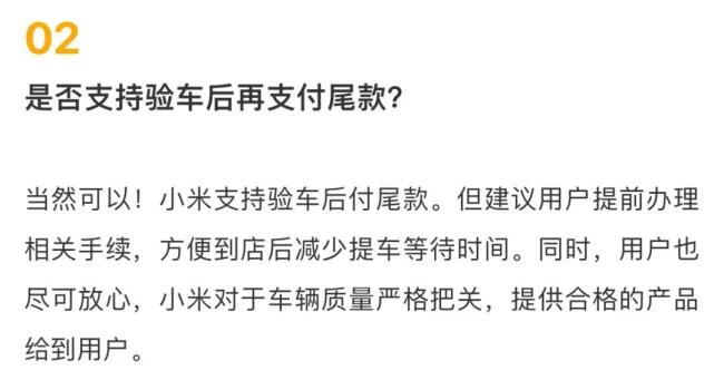 不过,有一种情况,小米会明确要求付尾款、否则取消订单。根据此前小米公关负责人王化在取消某用户订单的回应,如果用户在第一次暂缓提车后,到第二次排产时间如果继续选择延缓提车的话,就需要支付车辆尾款或分期首付款。此外,小米订单有消息为自支付定金之日起360天内,超过360天有消息,订单将自动取消且定金不会退还。