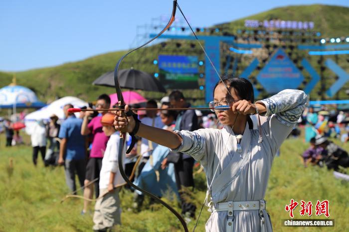 射箭,蒙古语称“苏日哈日布那”。古代,神射手在草原上享有很高的荣誉。在蒙古族传统中,“男儿三艺”常被视为男性专属,而现在越来越多的草原姑娘加入其中。