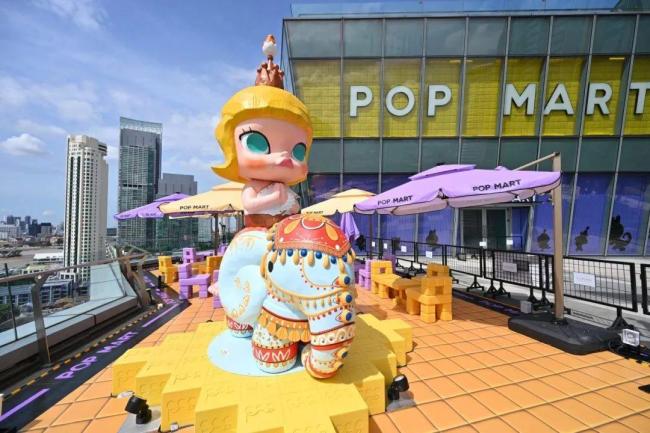事情起因是泡泡玛特于8月8日在泰国曼谷的ICONSIAM购物中心新开了一家全球最大的品牌旗舰店,面积达760平方米。该旗舰店分为两层,首层设有MEGA区、潮玩专区和POP BEAN互动区,还特别设立了泡泡玛特全球首家海外咖啡空间POP MART CAFÉ。户外广场则放置了身高4米的巨型Molly Thailand Limited装置,身穿泰国当地特色服装、骑着大象。泡泡玛特表示,门店设计灵感来源于泰国传统文化,融合了大量在地元素,如“水文化”和传统建筑语言。