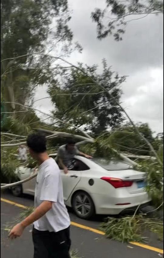 台风期间,闽粤沿海一带出现大风降雨,福建沿海阵风风力达到8级以上。8月14日00时30分前后,台风在福建漳浦县沿海登陆,中心附近最大风力达11级(30米/秒)。泉州一位居民表示,楼下的车也被大风刮倒的树砸中,尽管没有下雨,但风特别大,感觉房子都要被吹走了。