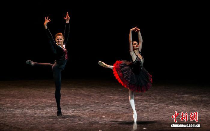 8月14日晚,莫斯科大剧院芭蕾舞团首席舞者丹尼斯·罗德金、埃莉奥诺拉·谢韦纳尔带来经典芭蕾作品《堂·吉诃德》。中新社记者 于海洋 摄