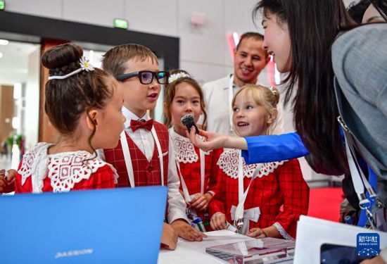 8月18日,在俄罗斯喀山举行的第三届俄罗斯-中国互利合作“萌芽”论坛上,俄罗斯小朋友利用AI智能眼镜与中国来宾对话。新华社记者 张超群 摄