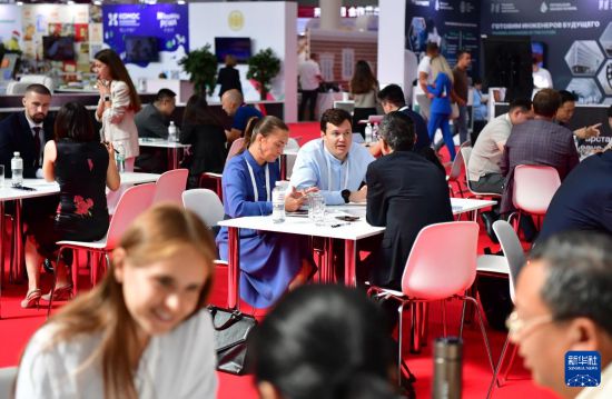 8月18日,多国企业代表在俄罗斯喀山举行的第三届俄罗斯-中国互利合作“萌芽”论坛上洽谈。新华社记者 张超群 摄