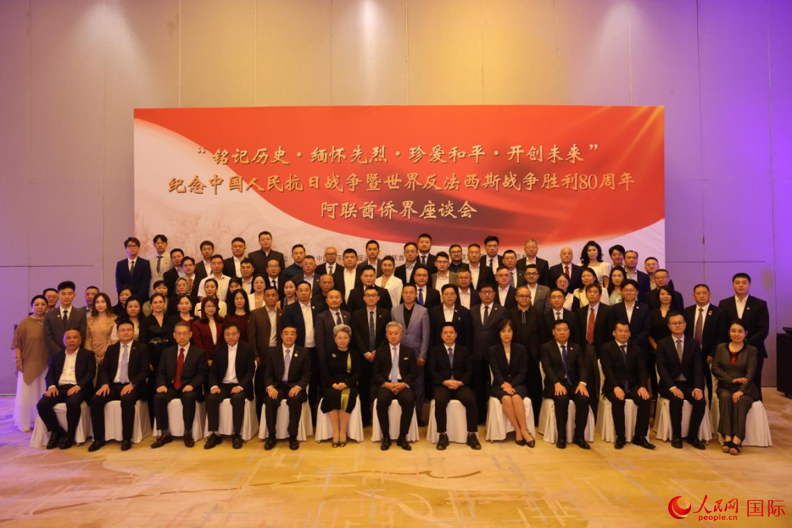 8月15日,阿联酋侨界举办纪念中国人民抗日战争暨世界反法西斯战争胜利80周年座谈会。人民网记者 张志文摄
