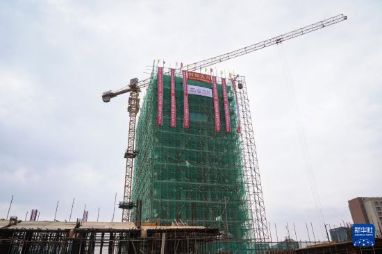 这是8月18日在埃塞俄比亚首都亚的斯亚贝巴拍摄的埃塞俄比亚航空公司总部大楼项目主建筑封顶仪式。新华社发(迈克尔·特韦尔德摄)
