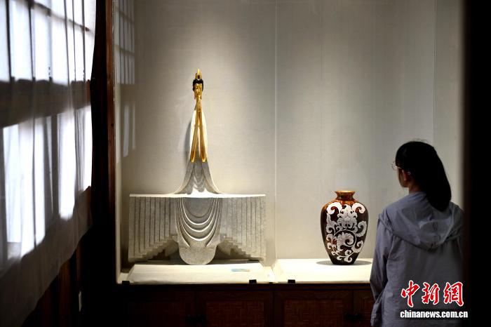 图为展出的脱胎漆器作品《一帆风顺》。中新社记者 吕明 摄