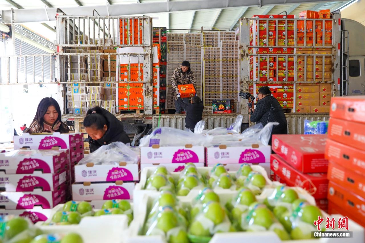 万邦·濮阳国际农产品批发市场,商户正在搬运水果。清丰县委宣传部供图