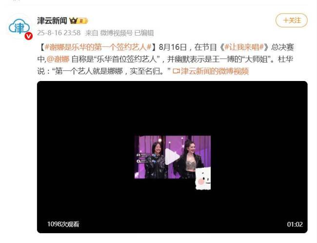 原来乐华艺人安全感是杜华给的。8月16日,在综艺节目《让我来唱》中,谢娜提到自己是乐华第一个签约艺人,还称自己是王一博的师姐,这番话迅速引发了网友们的热议。乐华CEO杜华也随即回应,称赞这位大师姐名不虚传。