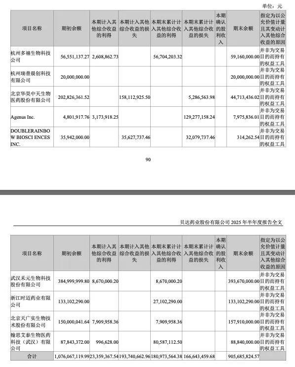 从上半年的收益来看,贝达药业不算是一个太成功的投资者。今年上半年,公司其他权益投资工具收益,从10.76亿元缩水至9.06亿元。