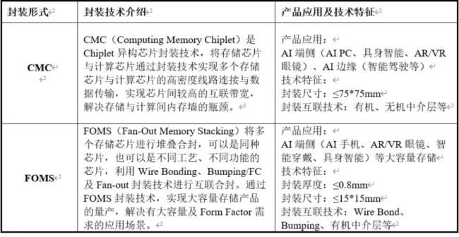 芯成汉奇目前主要规划两大类产品线,分别是应用于先进存储芯片的FOMS(Fanout Memory Stack)系列,以及先进存算合封的CMC(Computing Memory Chiplet)系列。