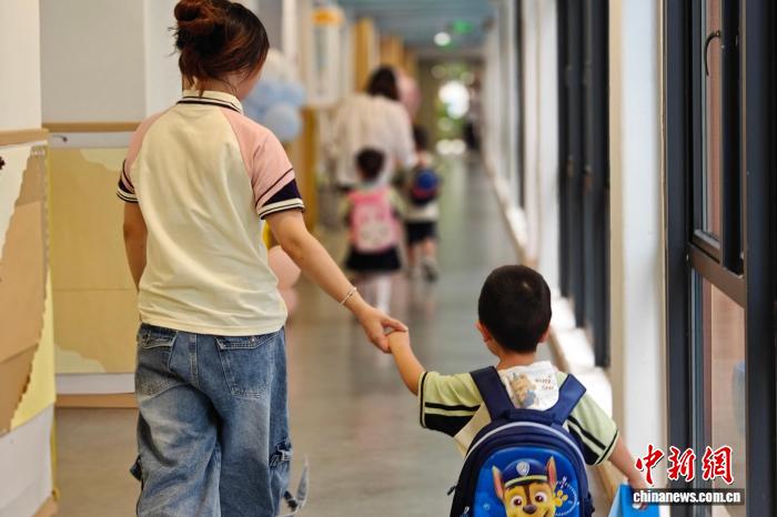 1日,福建各地中小学及部分幼儿园迎来2025年秋季开学第一天。图为孩童进入东浦幼儿园学习。叶秋云 摄