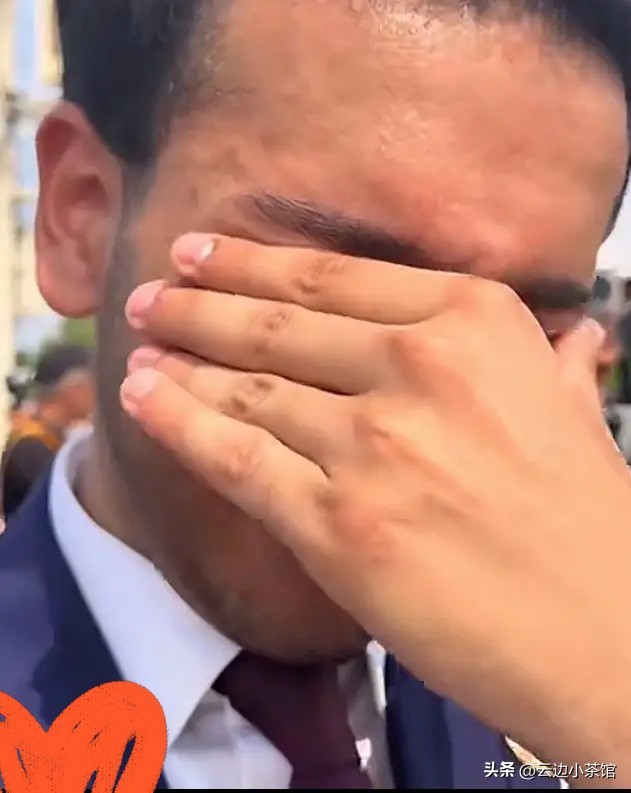 在北京阅兵现场,激动得热泪盈眶的外国记者——方浩明。刚开始是满脸微笑,看到祖国强大,特别自豪!就在那一瞬间,和平鸽飞出了,眼泪在眼眶里打转了!用手遮住流泪的眼睛,默默地抹掉眼泪,指着飞向蓝天的和平鸽!