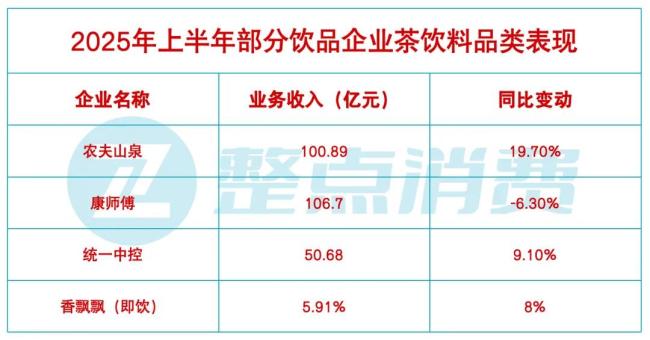 其中,农夫山泉凭借在无糖茶领域的先发优势和渠道精耕,加上茶π等有糖茶品类的市场表现,进一步缩小了与康师傅在茶饮料品类中的差距。