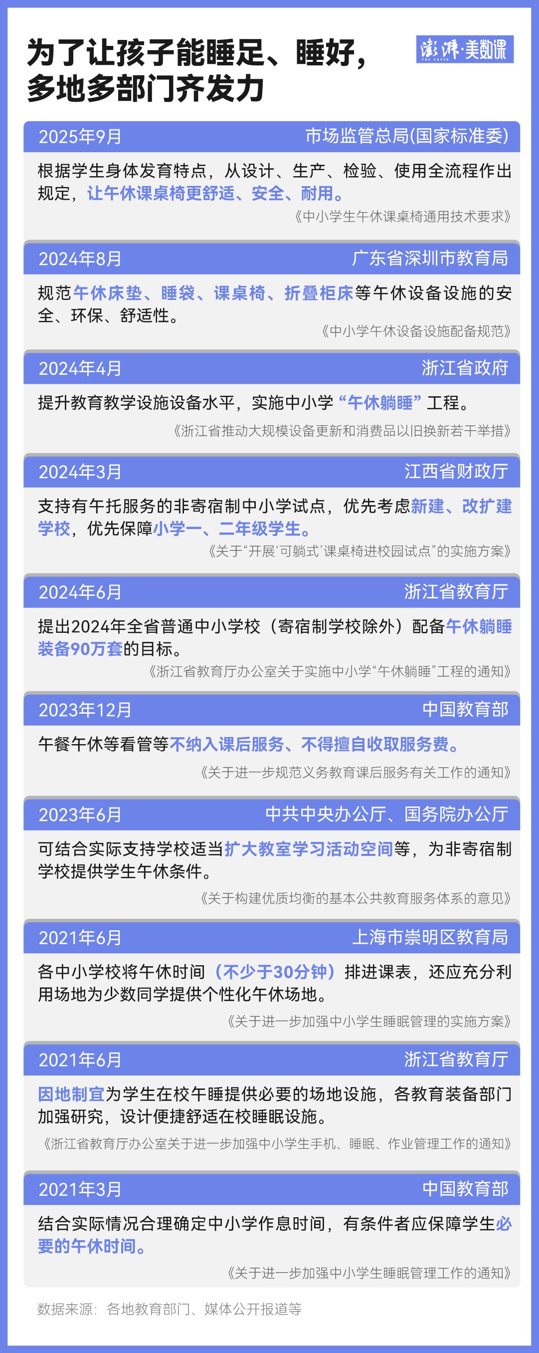 为了让孩子能睡足、睡好,在新国标之前,不少地区和部门早已推出相应的政策和指导。