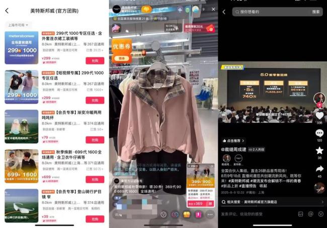 改革动作的确取得了一定成效。从美邦在抖音平台的团购券业务来看,其699代1600元的券累计卖出超56万份,299代1000元的券卖出超28万份,399代900元的券卖出超18万份。即便不算其余几种团购券,这部分预估收入就有将近5.5亿(美邦团购券核券率约35%-40%)。