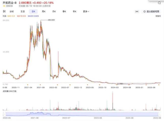 自9月8日调入港股通标的名单后,9月10日公司发布最新临床进展,南向资金的涌入进一步推高股价。9月12日暴涨77%,9月15日再涨115.58%,9月16日早盘一度冲至679.5港元。