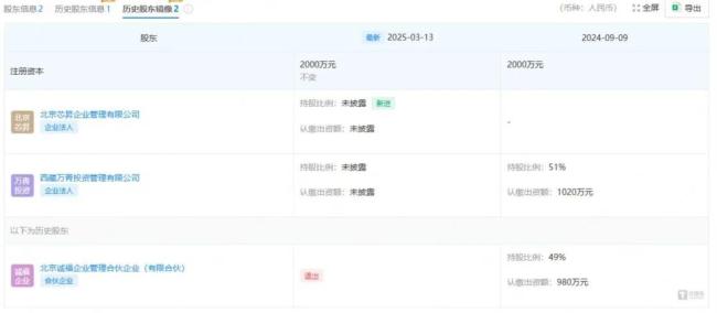 重要的转折点出现在2024年底。通州国资委背景的通州房地产将其持有的通域合盈40%股权转让给了西藏万青。几乎同时,通州国资委背景的北京集成电路尖端芯片基金退出了其在通域基金的份额。黄涛则通过其关联公司博韬富盈(深圳)投资合伙企业(有限合伙)(以下简称“博韬富盈”)追加认购了2亿元的通域基金份额。
