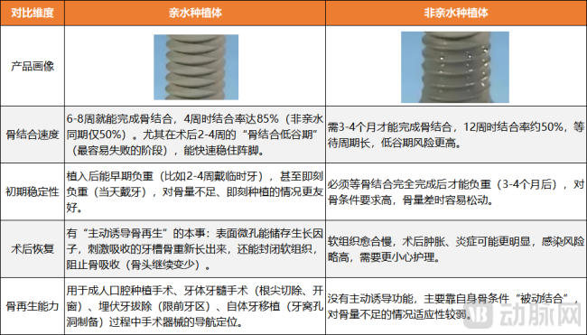 以种植牙为例,当下最火热且最受行业关注的无疑是亲水种植体,它通过特殊的化学或物理方法,使种植体表面从“疏水”变为“超亲水”。这一改变能吸引血液中的蛋白质和成骨细胞,并显著加快骨结合速度,将愈合期从传统的3-6个月大幅缩短至3-4周。此外,亲水表面也能减少纤维蛋白原吸附,从而降低术后肿胀和炎症反应,使患者恢复更舒适。