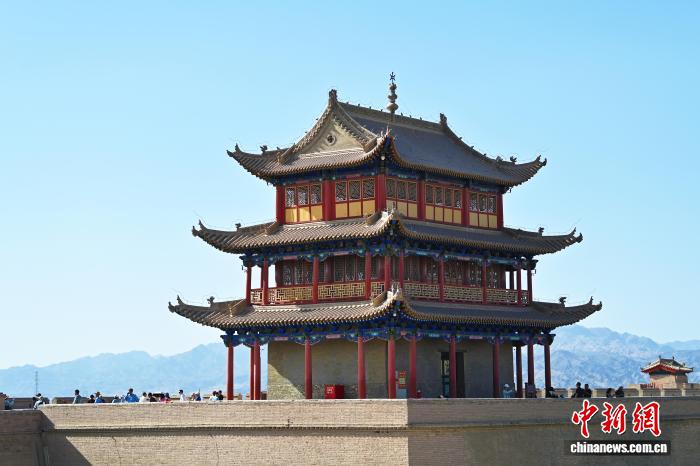 9月23日,甘肃省嘉峪关市嘉峪关关城文物景区内,游人在长城上游览。中新社记者 李亚龙 摄